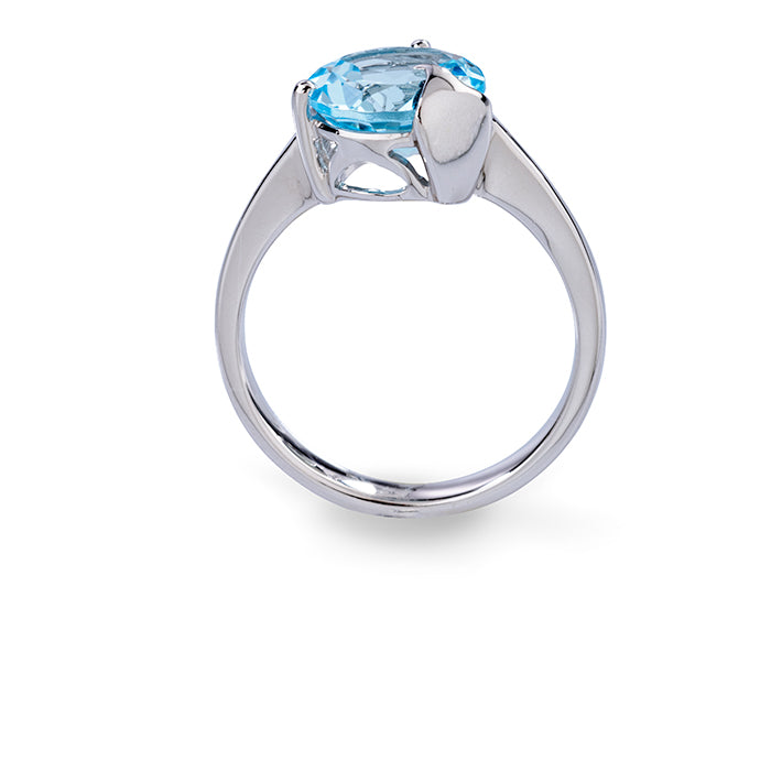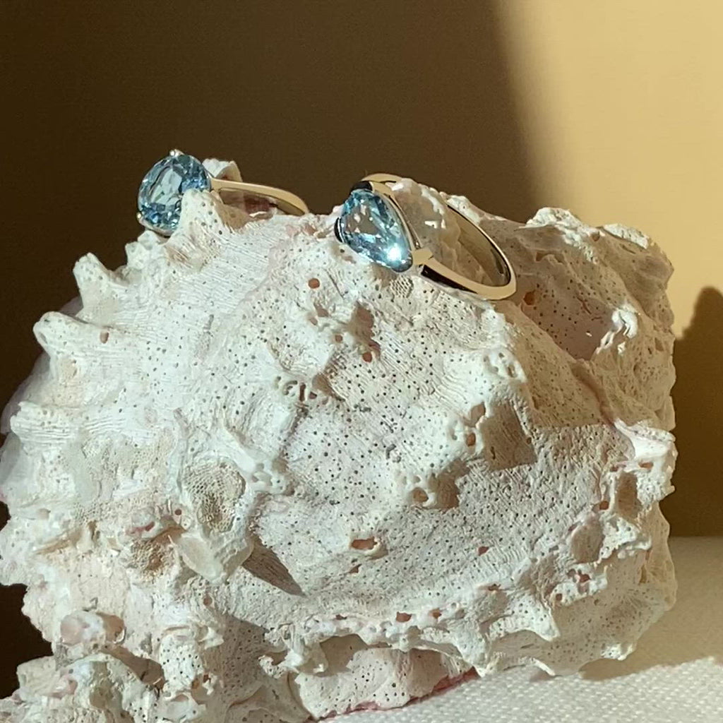 The statement piece of the first collection: the WAVE ring. Shiny silver is complemented here by a Blue Topaz in radiant light blue. The special detail is the incorporated wave in the setting. Unique and expressive.