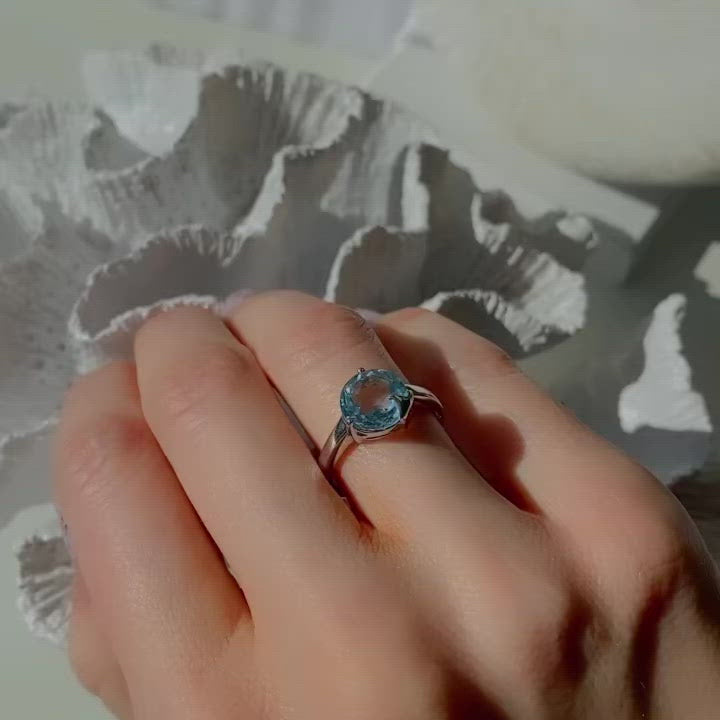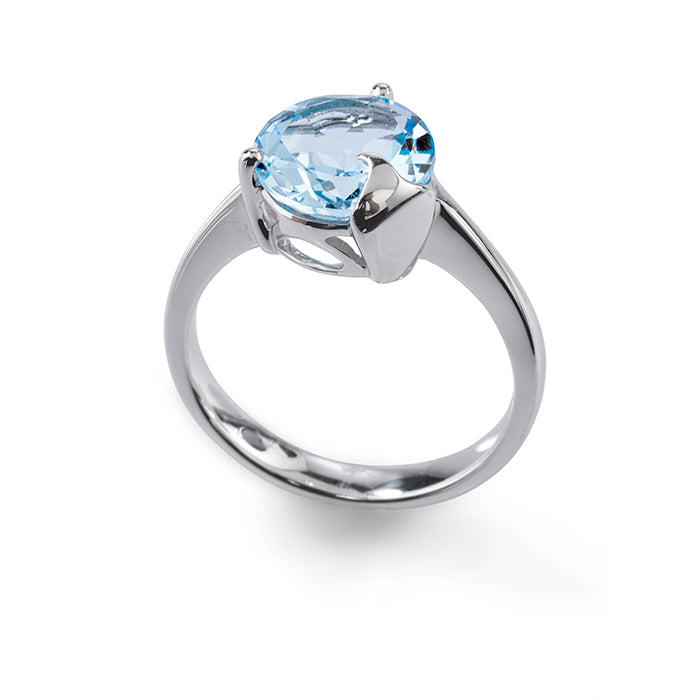 In its fantastic faceting, the blue topaz is reminiscent of glittering sea in bright sunshine.