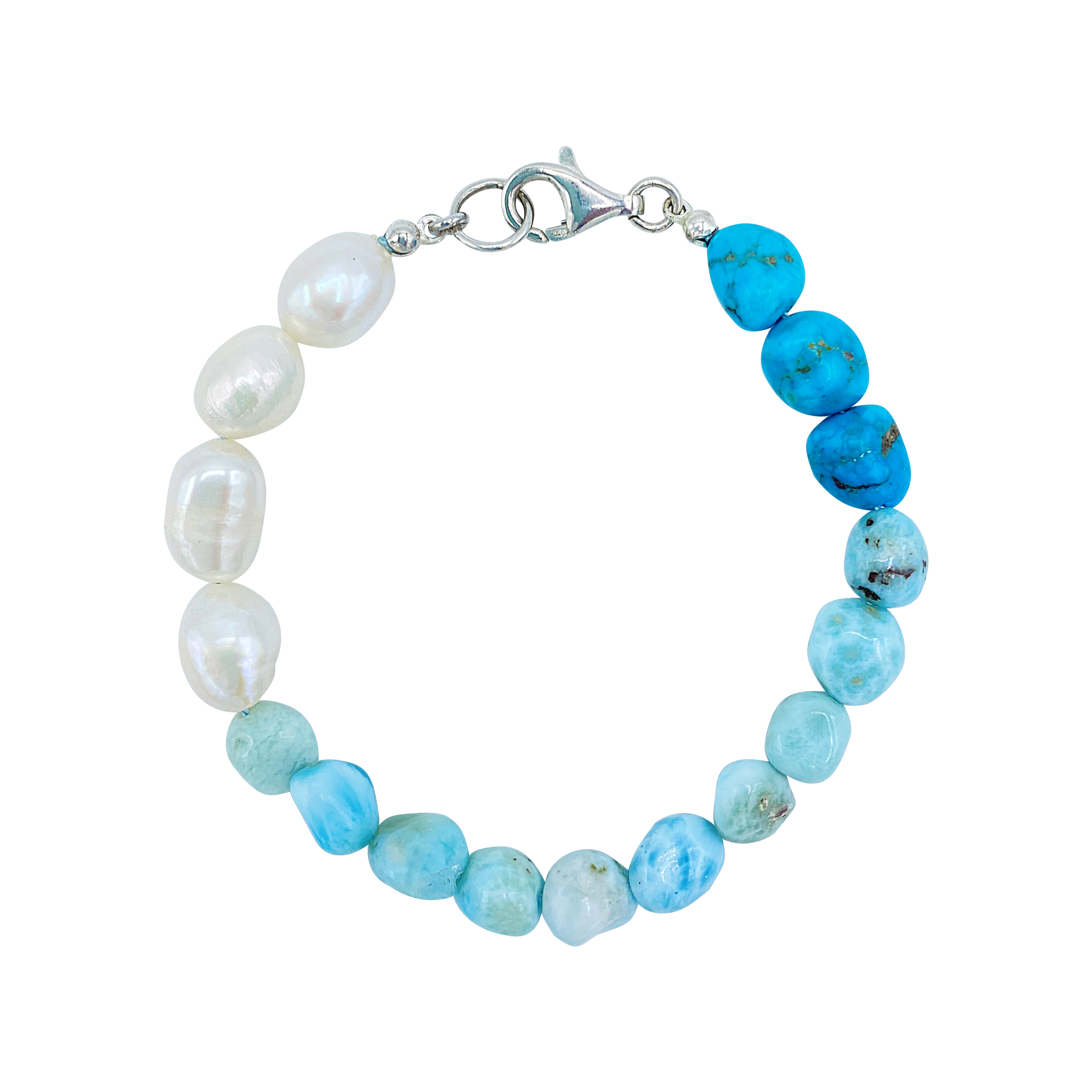 Three seaside favorites combined in one bracelet: from elegant Turquoise, to bright light Blue, to radiant White. You can have it all!