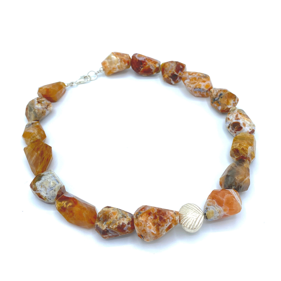 Dieses herrliche Collier hat eine unübersehbare Präsenz. Denn allein die besondere Farbe und die roughe Barock-Form des verarbeiteten Opal aus Mexiko machen das Schmuckstück zu etwas ganz Besonderem, das jedes Ihrer Outfits gekonnt perfektioniert!