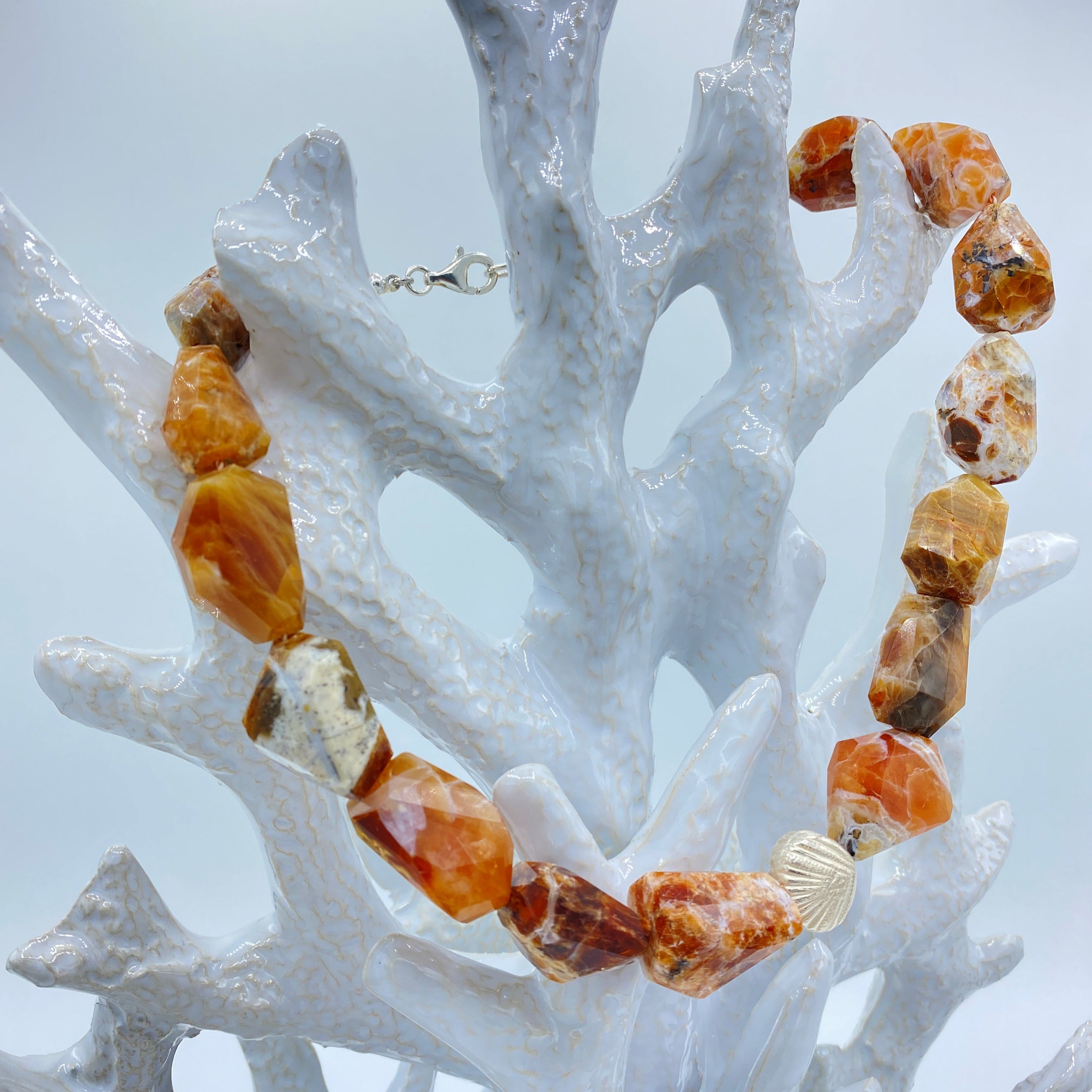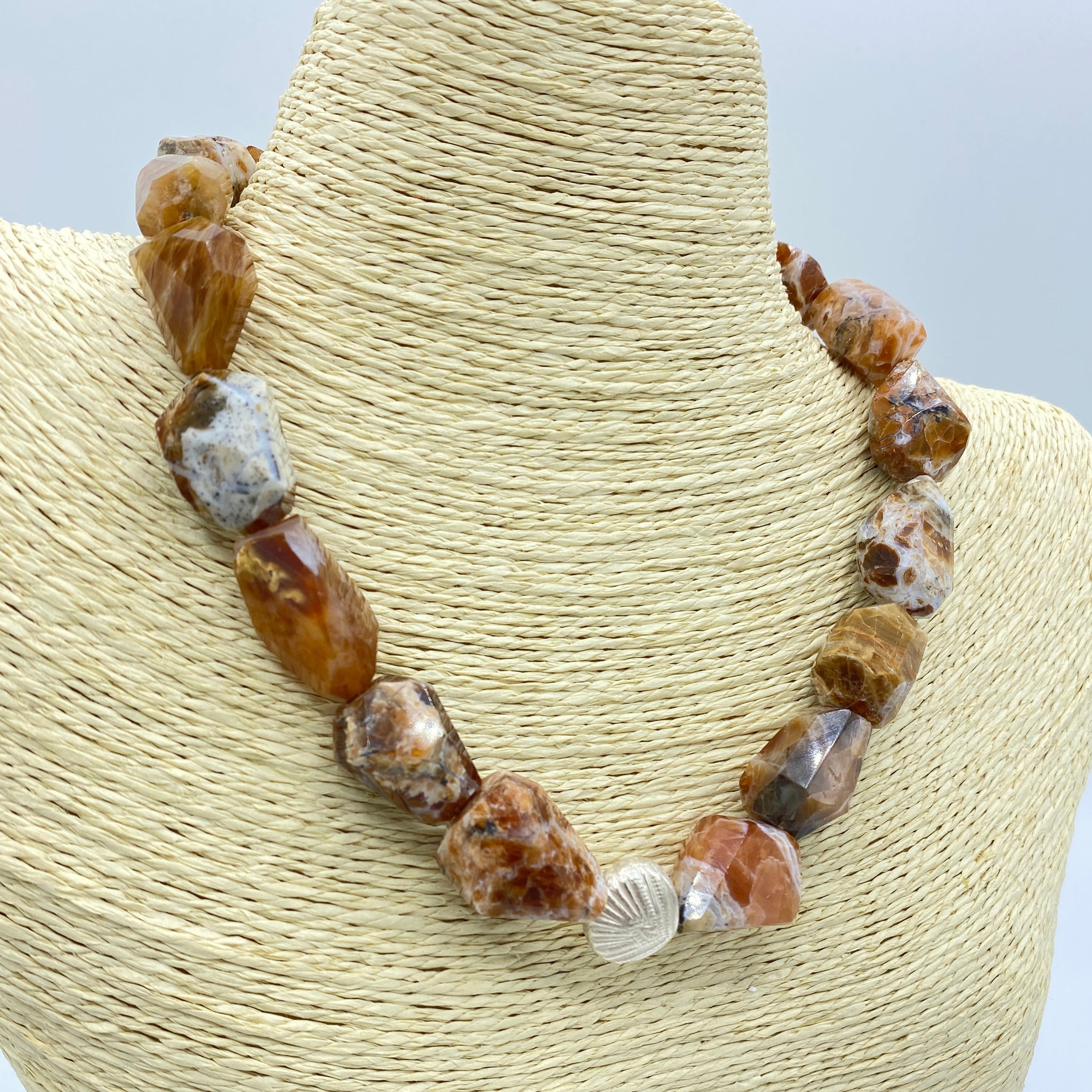 Reduced to the Max: Dieses Opal-Collier ist einzigartig in seiner Ausdruckskraft. Der braune Opal in der Farbe 'Brandy' fasziniert durch seine außergewöhnliche Farbe und Größe. Eine perfekte Kette für einen modernen Unisex Look: Diese Kette von the blue escape bringt den üppigen Edelstein-Look ins Jetzt 🤎